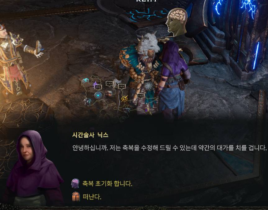 부캐 축복작을 할 때 시간의 끝 오른쪽에 있는 시간 술사 닉스와 대화해서 축복을 변경할 수 있다