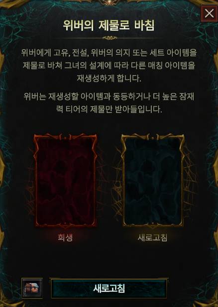 고유 아이템의 옵션이 하급일 때 수치를 리롤하기 위한 콘텐츠다