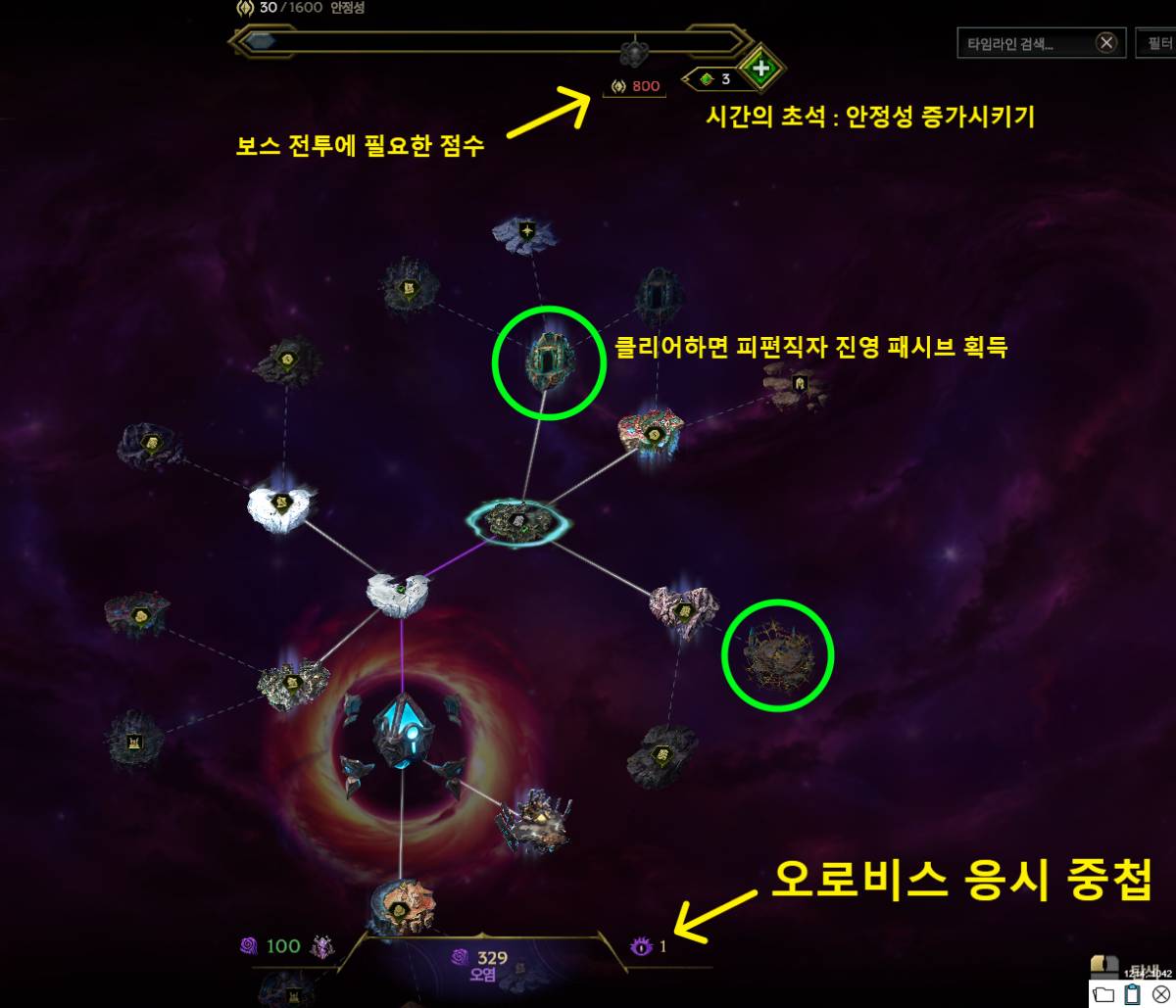 각 타임라인에서 에코를 클리어할 때마다 안정성 점수가 쌓이고 점수에 따라 타임라인의 퀘스트가 활성화된다.