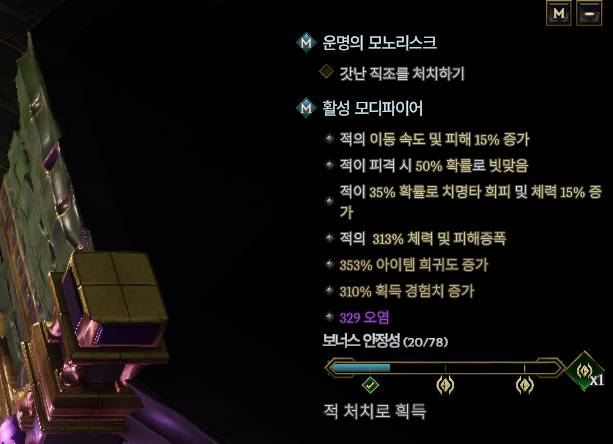 시간의 초석을 사용하면 안정성을 즉시 올릴 수 있으며 사냥 중 드롭된다