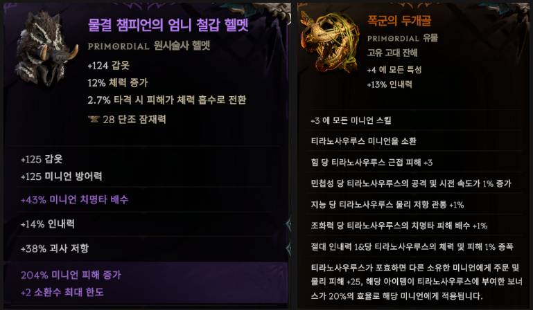 상점의 원시 고유 아이템들은 옵션이 매우 좋으며