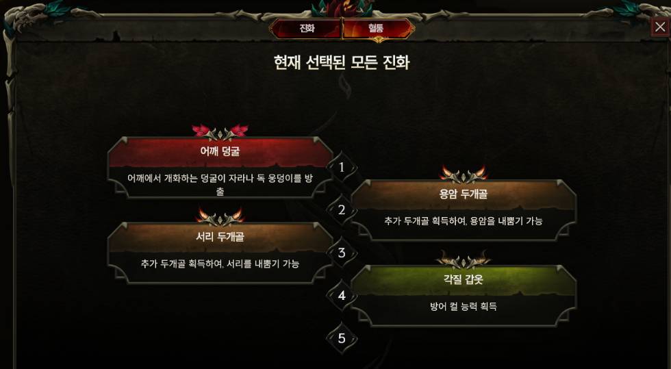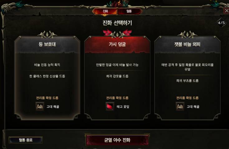 동굴 마지막 장소에서 원시 드래곤을 처치하고 뒤쪽 둥지 알을 클릭하면 진화를 선택할 수 있다