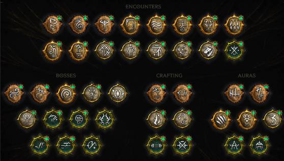 분노 및 재산 노드와 초록색으로 표시된 룬 사재기에 투자하면 룬과 문양 파밍에 꽤 많은 도움이 되지만