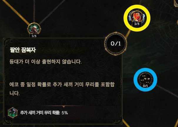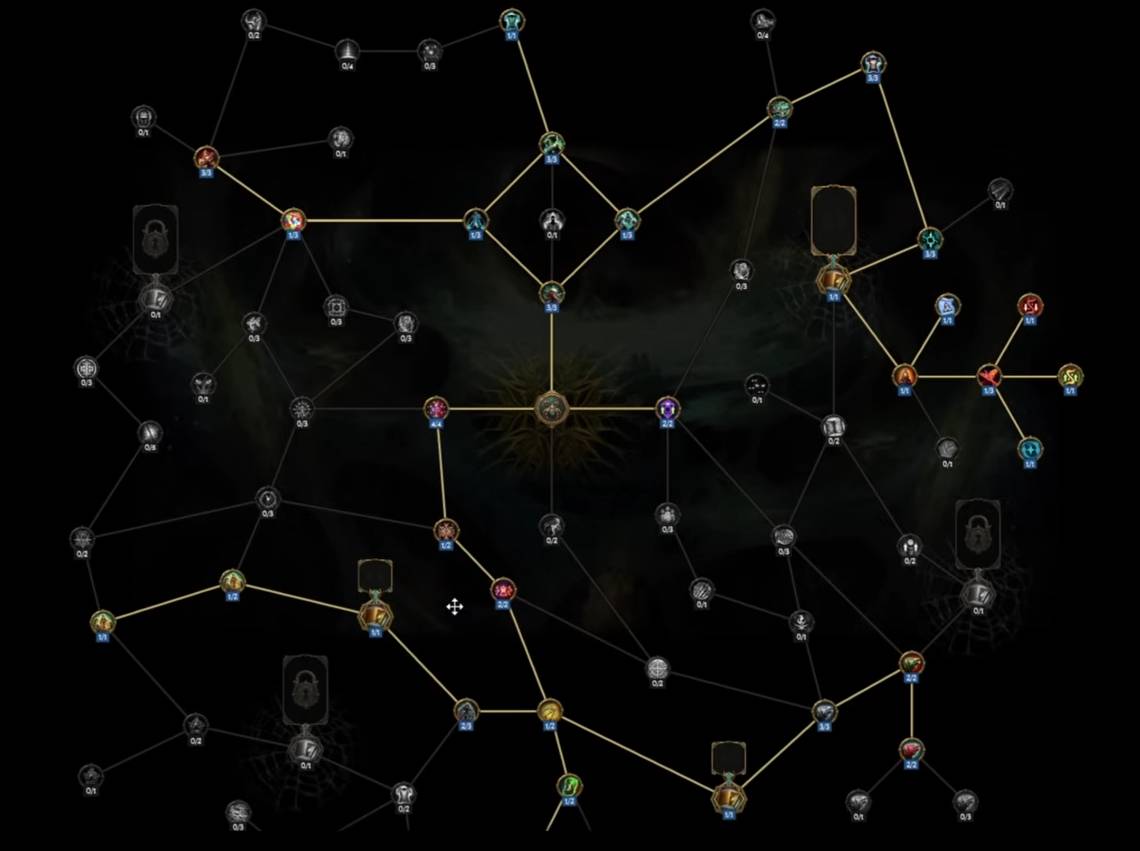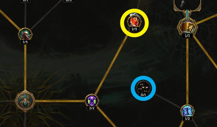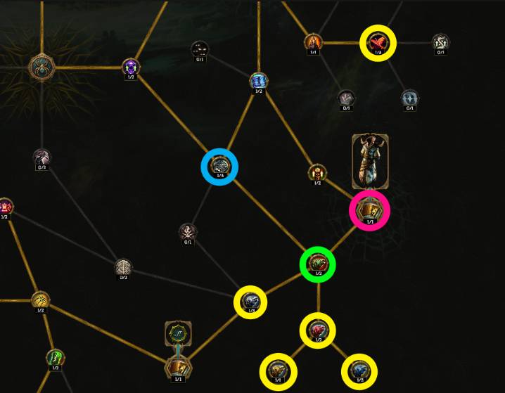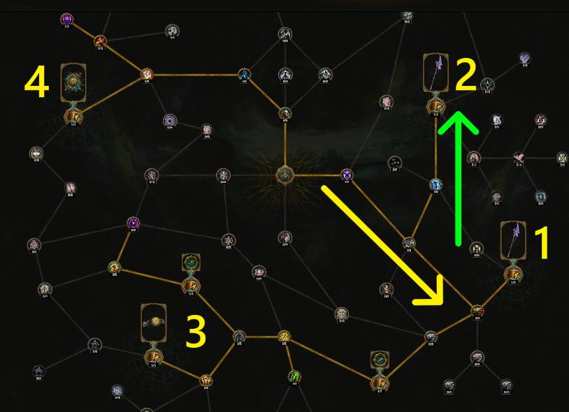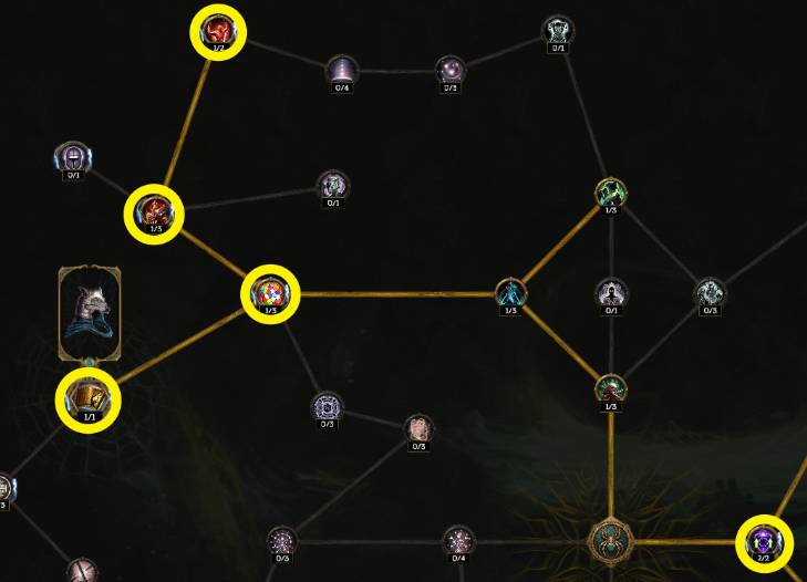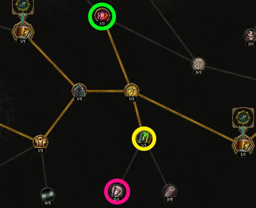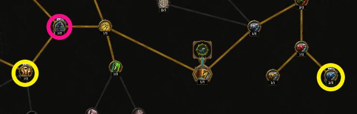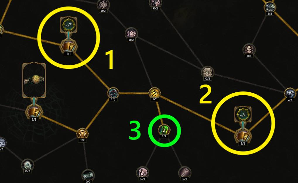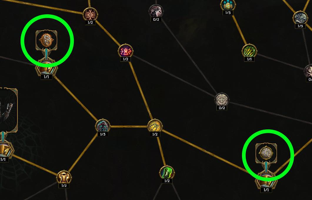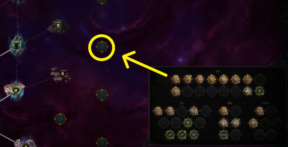 챔피언 몹을 통해 고급 아이템을 파밍하고 싶다면 11시, 6시 방향 노드에 투자하면 된다