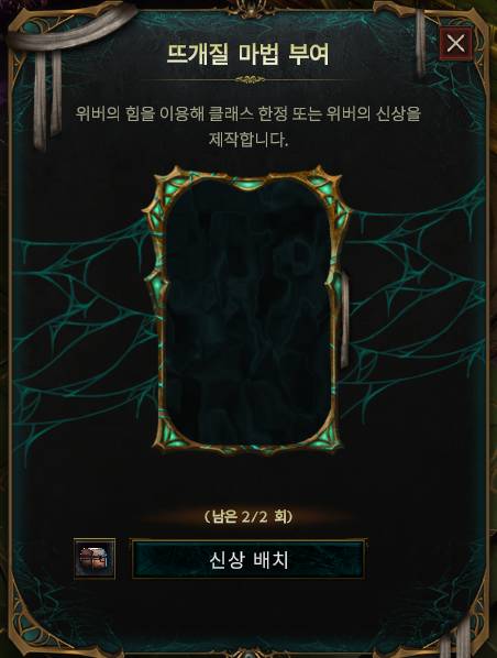 챔피언 적 처치 시 드롭되며, 아이템에 있는 접사 하나를 봉인 접사로 가지게 된다.